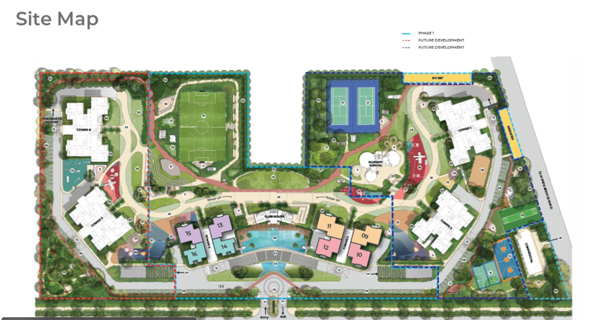 Ashiana Aaroham Sector 80 is designed around four core values — Learn, Nurture, Support, and Care — to promote holistic growth for children. Spanning 10.8 acres with 3 acres of green open spaces, it features a 40,000 sq. ft. clubhouse and a state-of-the-art Learning Hub for art, music, dance, reading, and sports like swimming, tennis, basketball, and net cricket. The project also brings back the joy of outdoor play with its Play Street Area, complete with a dry fountain, hopscotch, treehouse, maze, and more — creating a vibrant, engaging environment for kids and families.